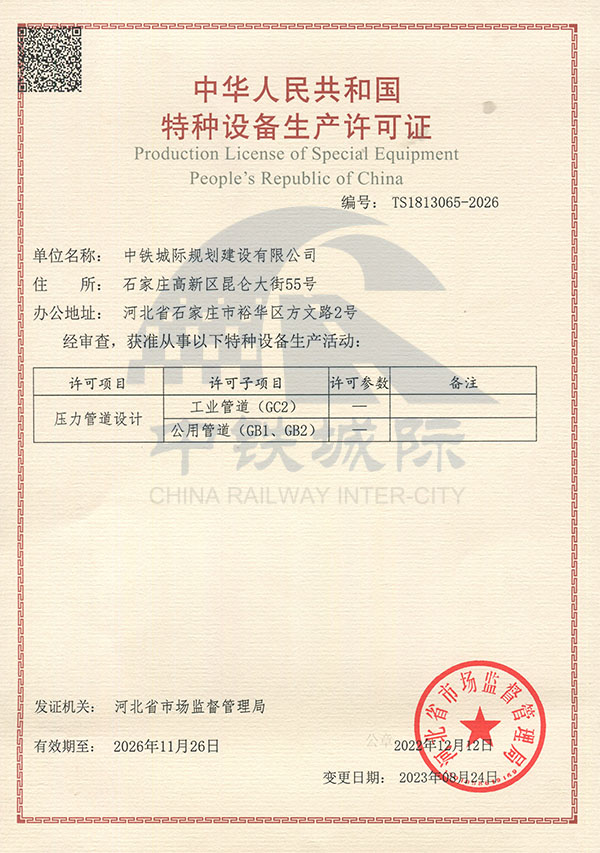 中鐵城際規劃建設有限公司具有燃氣設計市政行業(城鎮燃氣工程)專業乙級設計證書。主要從事燃氣設計、城市燃氣及天然氣高、中、低壓管網規劃和設計,住宅小區和液化氣小區管網設計。