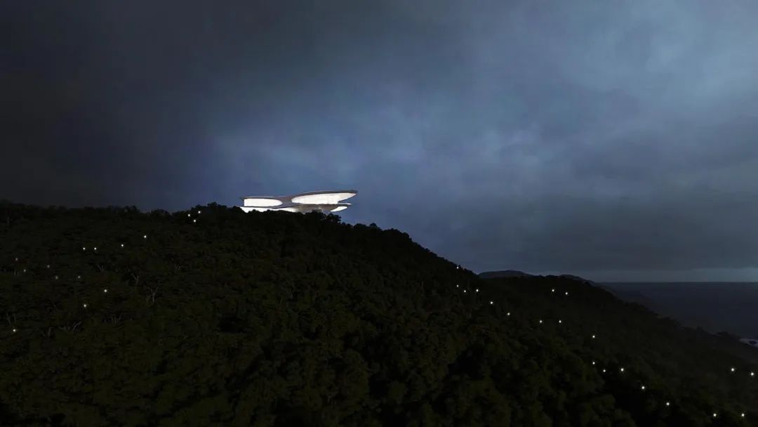 本次設(shè)計(jì)項(xiàng)目——云海驛站位于鹽田區(qū)三洲田森林公園核心區(qū)的海拔 378m 馬巒山山頂,總占地800平方米,是鹽田區(qū)半山公園帶重要景觀節(jié)點(diǎn)。項(xiàng)目背靠三洲塘水庫(kù),直面大鵬灣,擁有 360°一覽山海城的獨(dú)特視景,是馬巒山絕佳的觀景瞭望之地。