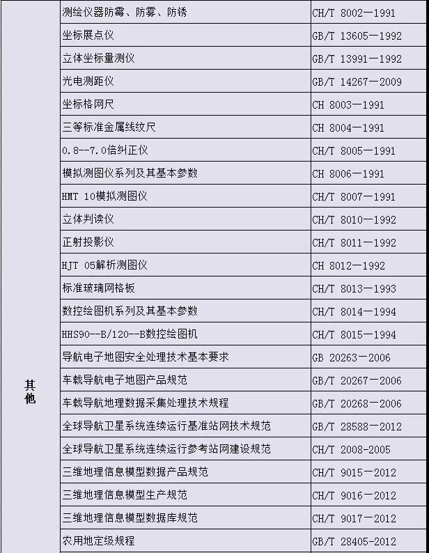 測(cè)繪專(zhuān)業(yè)相關(guān)標(biāo)準(zhǔn)大全