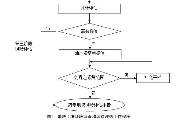 地塊土壤環(huán)境調查和風險評估工作程序可分為逐級遞進的三個階段,見圖1: