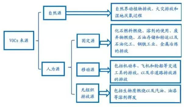 在眾多人為源中,工業源是主要的VOCs污染來源,具有排放集中、排放強度大、濃度高、組分復雜的特點。