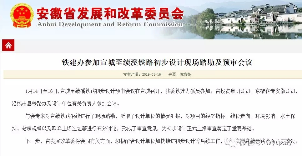 據省發改委鐵建辦消息,1月14日至16日,宣城至績溪鐵路初步設計預審會議在宣城召開,該委鐵建辦派員參加。省投資集團公司、京??蛯0不展?,沿線市縣鐵路辦及設計單位有關負責人參加會議。