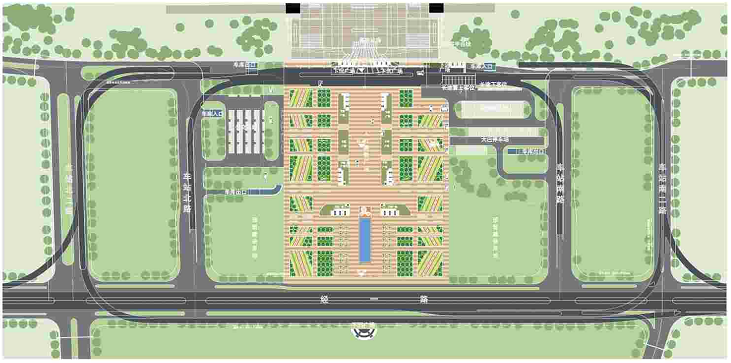 1、西廣場區(qū)域配套交通設施,包括公交車首末站、社會大巴停車場、長途旅游客車蓄車場及客流集散區(qū)等;