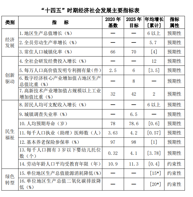 ——經(jīng)濟(jì)質(zhì)量效益顯著提升。京津冀協(xié)同創(chuàng)新共同體建設(shè) 縱深推進(jìn),高質(zhì)量發(fā)展體系更加完善,科技進(jìn)步貢獻(xiàn)率明顯上 升,產(chǎn)業(yè)基礎(chǔ)高級化、產(chǎn)業(yè)鏈現(xiàn)代化水平大幅提升,農(nóng)業(yè)基礎(chǔ) 更加穩(wěn)固,實(shí)體經(jīng)濟(jì)、先進(jìn)制造業(yè)、數(shù)字經(jīng)濟(jì)加快發(fā)展,現(xiàn)代 服務(wù)業(yè)高質(zhì)量提升。綜合經(jīng)濟(jì)實(shí)力和政府財力再上新臺階,全市生產(chǎn)總值、一般公共預(yù)算收入年均增長分別達(dá)到 6%以上、 10.6%,總量分別達(dá)到 8000 億元、1000 億元,省會首位度進(jìn)一 步彰顯,區(qū)域中心城市輻射帶動能力和城鄉(xiāng)區(qū)域發(fā)展協(xié)調(diào)性明 顯增強(qiáng)。