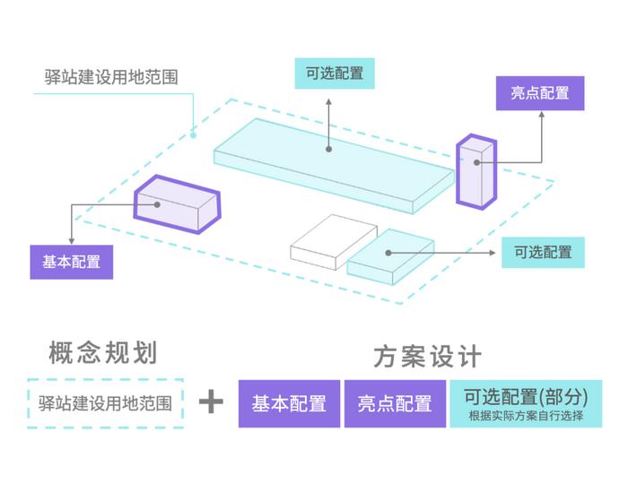 設計內(nèi)容包含整體驛站的概念規(guī)劃及基本配置、亮點配置、可選配置的方案設計。