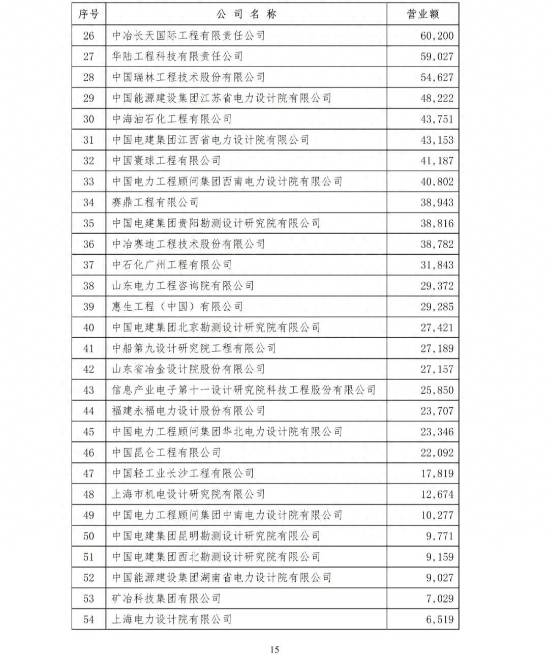 關于公布勘察設計企業工程項目管理和工程總承包營業額二〇二三年排名的通知