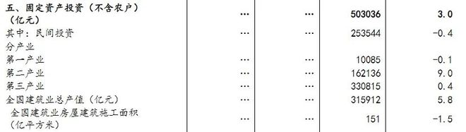 分產(chǎn)業(yè)看,第一產(chǎn)業(yè)投資10085億元,比上年下降0.1%;第二產(chǎn)業(yè)投資162136億元,增長9.0%;第三產(chǎn)業(yè)投資330815億元,增長0.4%。
