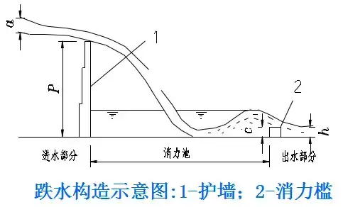 跌水構(gòu)造:?jiǎn)渭?jí)和多級(jí)之分,溝底有等寬與變寬之別?;緲?gòu)造可分為進(jìn)水口、消力池和出水口三個(gè)部分。
