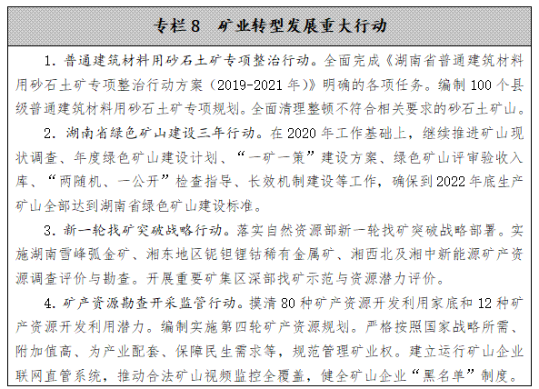 ——高質(zhì)量發(fā)展的資源要素保障能力全面加強。自然資源市場化配置效率顯著提高,高質(zhì)量發(fā)展用地需求應(yīng)保盡保,優(yōu)勢礦種保障能力明顯提升,新增建設(shè)用地規(guī)模控制在國家下達目標內(nèi),采礦權(quán)數(shù)控制在3000個以內(nèi),其中砂石土礦控制在1500個以內(nèi)。